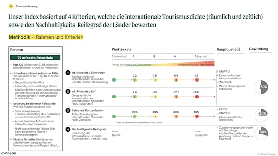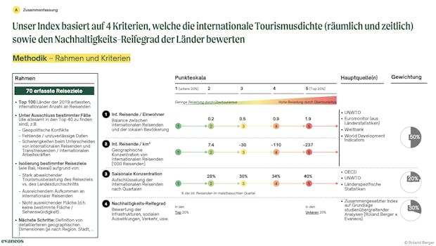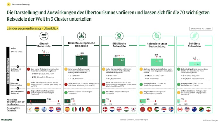 - Um subjektive Wahrnehmungen zu überwinden und die Debatte zu objektivieren, haben die Reiseplattform Evaneos und die Unternehmensberatung Roland Berger den ersten Übertourismus-Index erarbeitet.